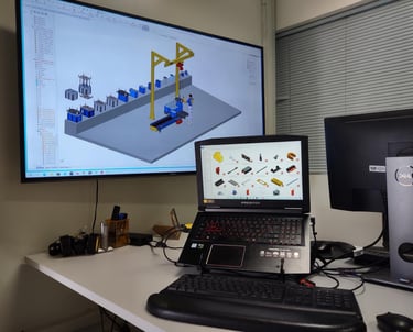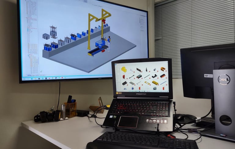 No desenvolvimento de projetos industriais, a modelagem 3D tornou-se uma necessidade estratégica. O ambiente digital permite visualizar e integrar estruturas, dispositivos e sistemas antes da execução física, garantindo maior controle técnico do projeto.